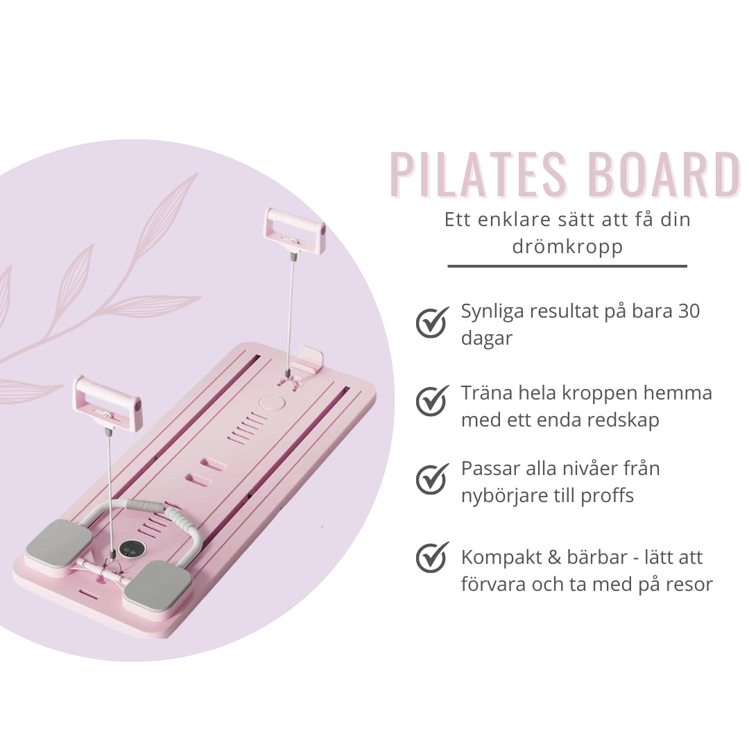 Vår bästsäljare "Pilates Board" har redan hjälpt tusentals kunder att komma igång med smart hemmaträning - utan att offra varken plats eller resultat. Med 5/5 i betyg och viral spridning på sociala medier är det inte svårt att förstå varför. Testa själv och känn skillnaden.